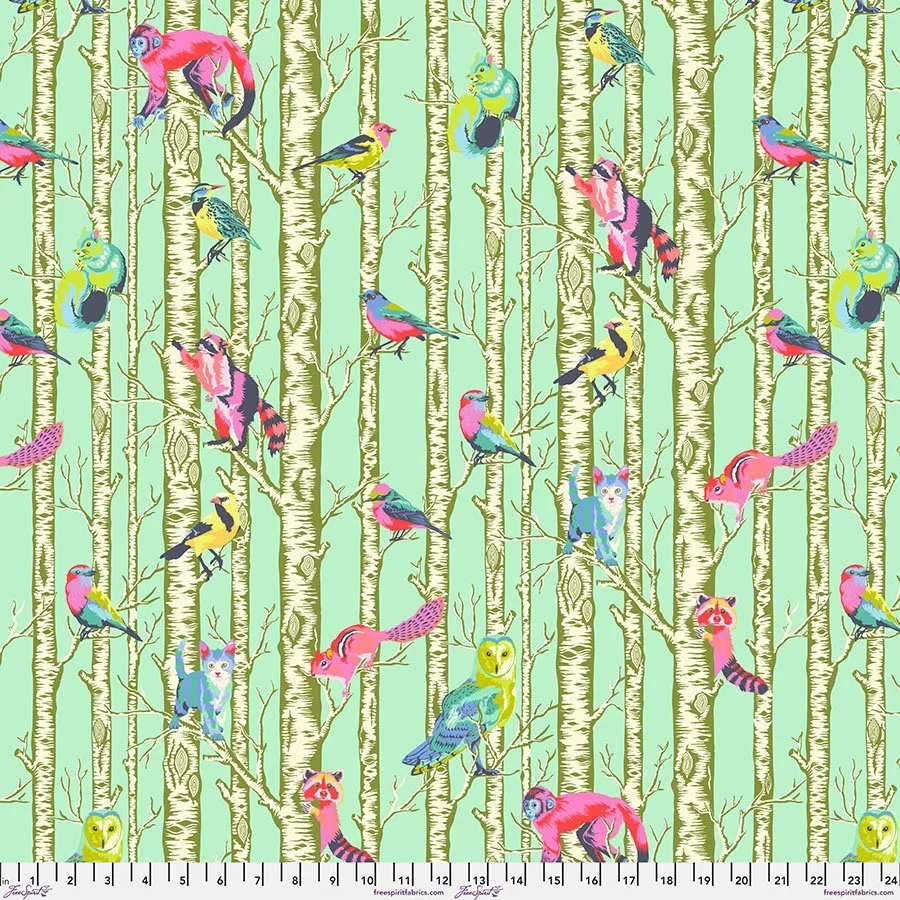 “18 years ago, I sat down to design my very first fabric collection. I didn't know where that exercise would lead me or that it would completely change my life forever. I poured everything I had into those drawings without a contract, a guarantee, or a company that wanted to produce what I came up with. That first collection was something of a prayer, a meditation, a hope for a future I didn't have the experience to conceive of yet. That collection was called Full Moon Forest, and it was the first step on a path that has consumed my every waking moment since. When I realized that I was again sitting down to design a fabric collection but now for the 50th time, I felt appreciation wash over me. With this new collection, I want to honor where I began and what I have gained along the way. So much has changed since that first collection and in some ways so much is still the same. Full Moon Forrest II is the culmination of the things I have learned along the way and the ways I have evolved, improved, and achieved clarity over the years of doing a job that I love so much. In this new collection, I have revisited each of the original prints and reimagined them with all of the things I have learned. I didn't want to ignore the original completely, so I included three original prints as "ghost" versions printed in white on white. These prints are designed to act as a memory, a backdrop, the very foundations that the new prints were built upon. This is a thank you letter for the last 18 years, to the manufacturers, retailers, and quilters that have supported me along the way. Full Moon Forest II is a great bookend to my first 50 collections and an awesome springboard for the next 50.” -Tula Pink